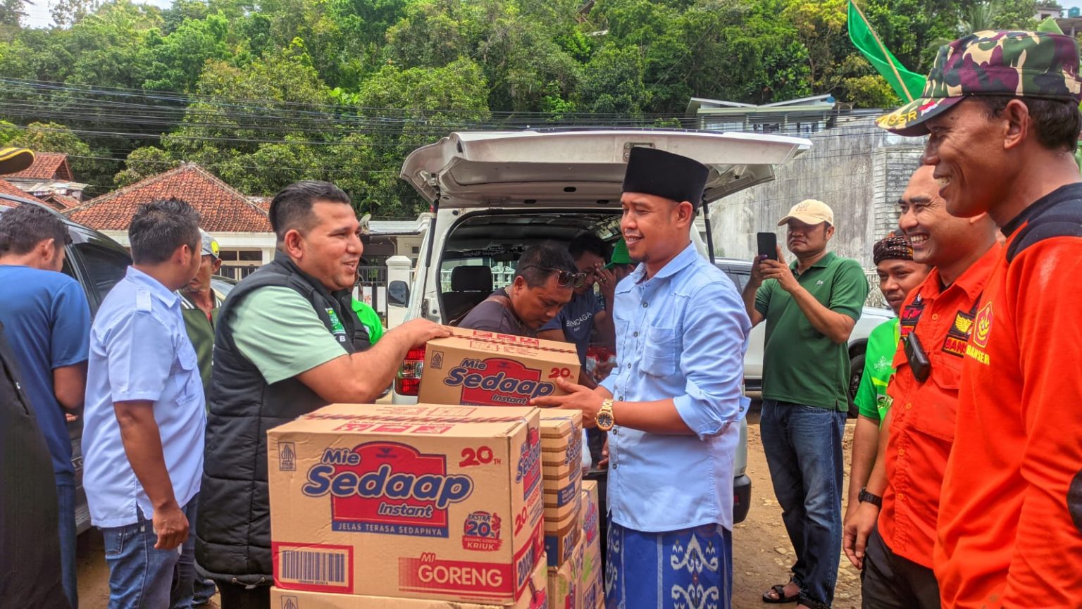 SUKABUMI – Ketua Komisi II DPRD Kabupaten Sukabumi dari Fraksi Partai Kebangkitan Bangsa (PKB), Hamzah Gurnita, turun langsung meninjau lokasi bencana banjir dan longsor di Kecamatan Cisolok pada Kamis (30/10/2025). Kunjungan ini bertujuan untuk menyerahkan bantuan sembako dan kebutuhan dasar bersama jajaran Ansor dan Banser NU.